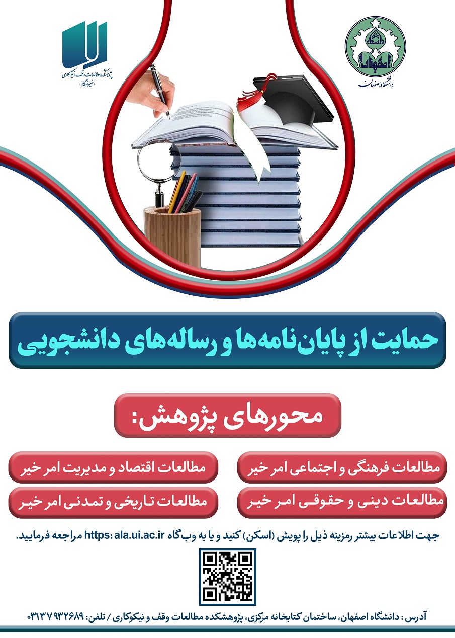 اطلاعیه حمایت از پایان نامه / رساله دانشجویی پژوهشکده مطالعات وقف و نیکوکاری